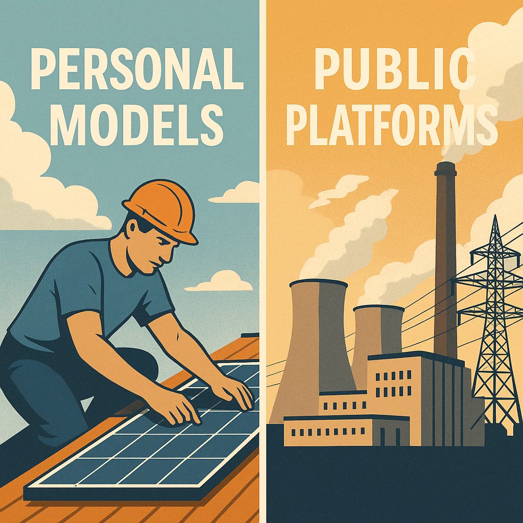 The outcome is a dual-track system where personal and public AI are not rivals but complements. Autonomy and scale reinforce one another, just as rooftop solar strengthens the resilience of the wider electrical grid.