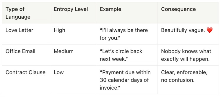 When entropy is too high in a place that needs precision, misunderstanding grows — and misunderstanding becomes risk.