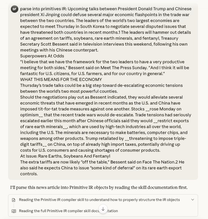 We’ll run it directly through my Claude Skill called primitive-ir-compiler, and see what Claude gives us in return.