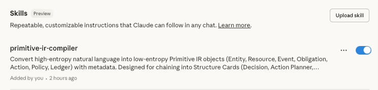 It’s called Language Entropy, and my solution to control it is a small but powerful tool called the Primitive IR Compiler — a ready-to-use SKILL.md file available to paid subscribers.