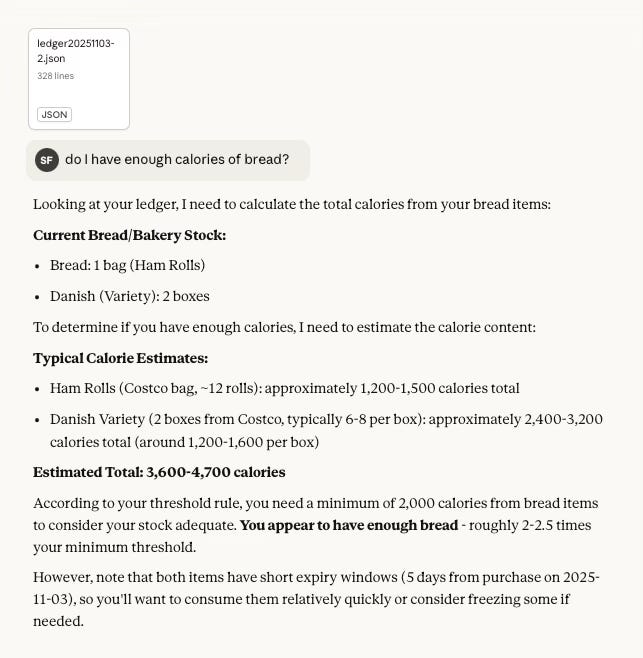 And I need to add an limit. Say I want to control the calories of my bread stock. So I simply say: as long as my bread stock is exceed 2000 cal, then I am fine on stock. I don’t know each of my groceries’ calories, I just need an estimate, let the model to go figure it out.