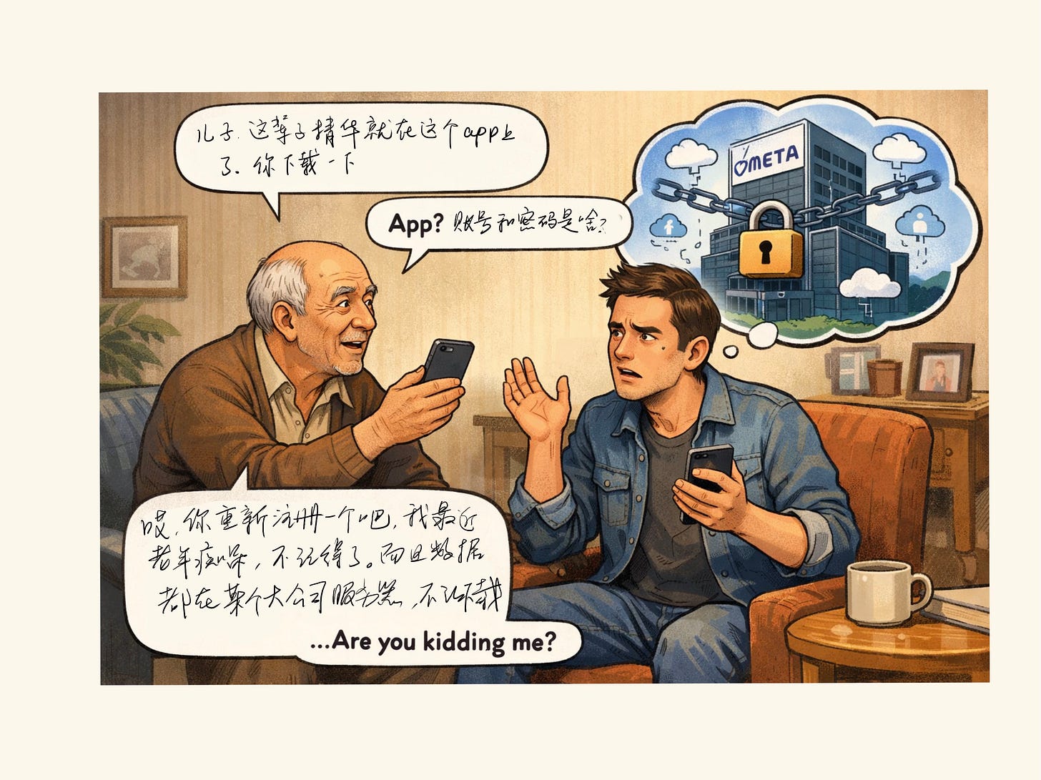 Old man: Son, everything essential from my life is here. Download this mobile app.