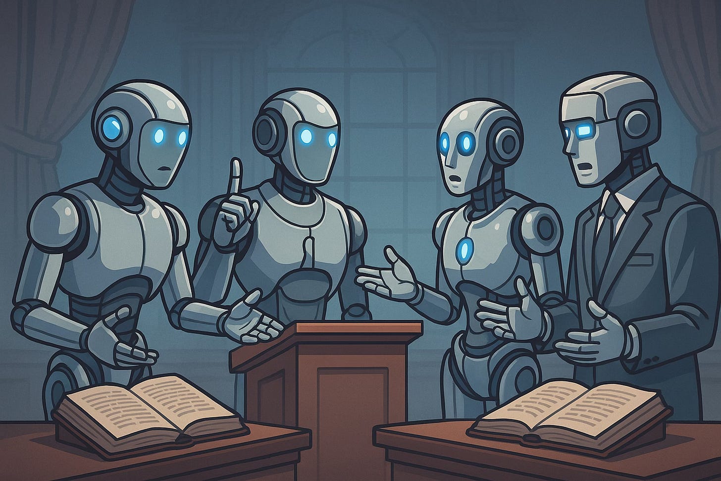 Imagine a specialized runtime: a universal machine designed not to run just software, but a certain type of rules — legal, ethical, organizational. Or an agent society, where multiple personas argue, negotiate, and debate rules until fuzziness collapses into clarity, and truth emerges from structured disagreement. In these futures, RaC provides the hard spine of legitimacy, while LLMs and agent systems supply the flexible muscle of interpretation, exploration, and adaptation.