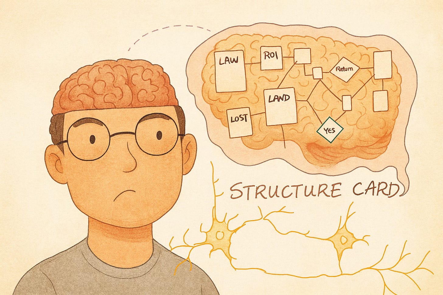 When Dave makes a decision — whether it’s about a case, an investment, or a family matter — his brain calls upon these Structure Cards, runs them through conditions, and outputs a choice.