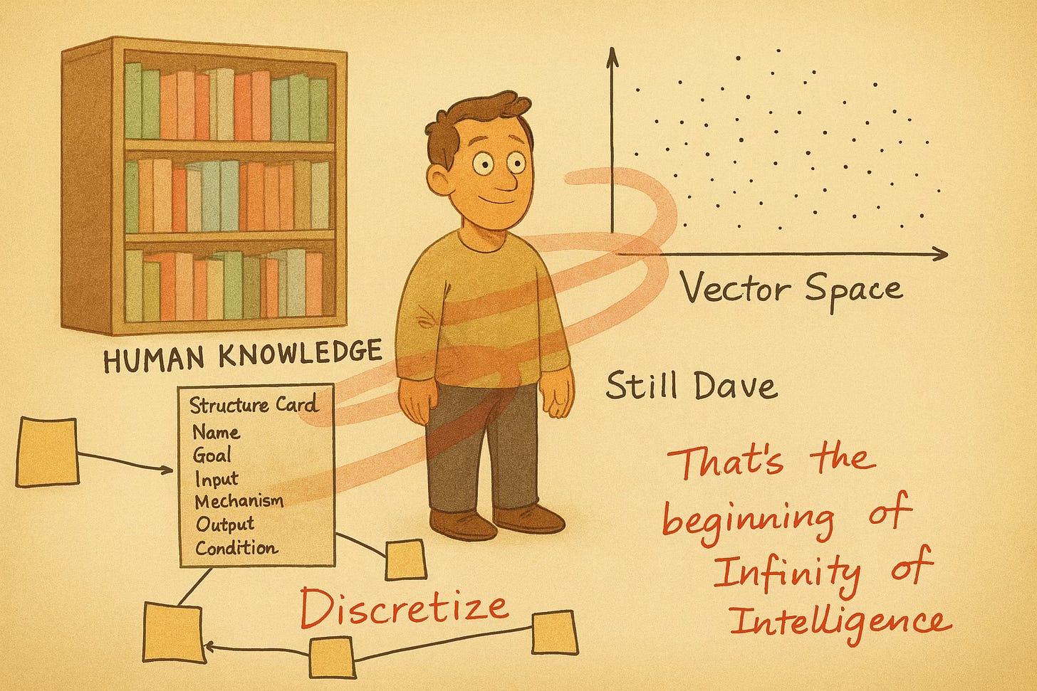 Large Language Models (LLMs) have given us a vast ocean of continuous meaning — a seamless vector space where semantics flow endlessly. Yet that very continuity is also their limitation: it’s too vast, too fluid, too parallel. There are no boundaries where thought can settle, no stable edges where intention can take hold.
