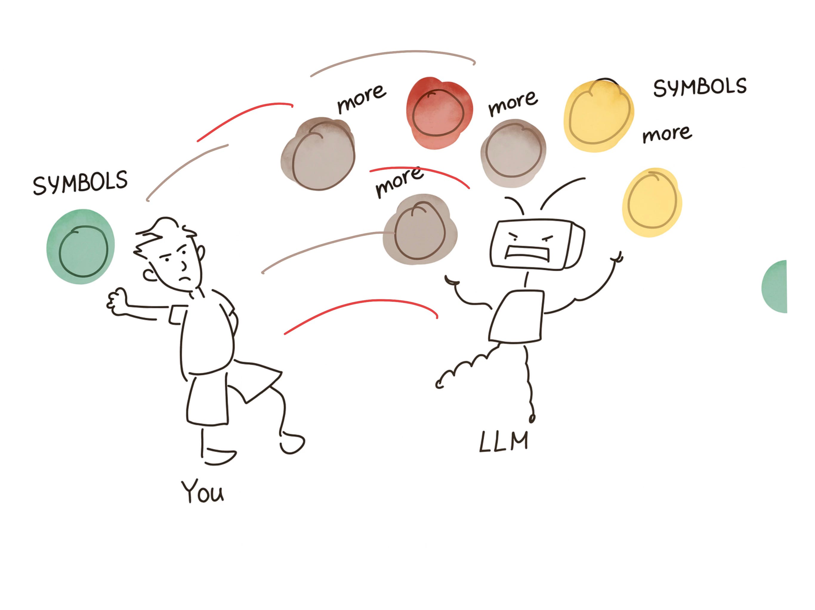 You give it a sentence, a question, an essay, and it throws more symbols back at you.