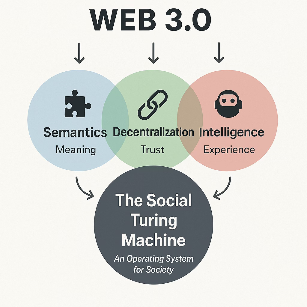 From the Semantic Web to Decentralization to AI — tracing three decades of evolution toward the Social Turing Machine, a new operating system for society.