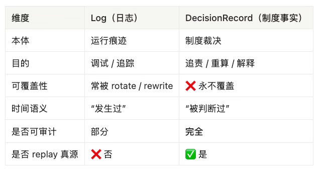 Event 是事实,不携带责任;它只说明“发生过”,不说明“应该发生、谁承担后果、失败如何解释”。